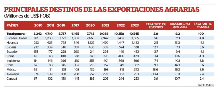 El funcionario resaltó que en el lapso de los últimos 23 años las agroexportaciones peruanas han crecido a una tasa promedio de 11.9% por año. Pero ¿cuáles son los productos estrella que sostienen ese rendimiento del agro moderno del país?