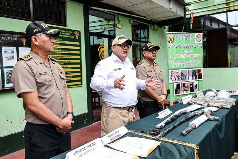 Posteriormente, en la comisaría de Iquitos, el ministro participó en la presentación de resultados de otros operativos policiales ejecutados en los últimos días en la región, remarcando que el sector Interior respalda con firmeza a los buenos efectivos.
