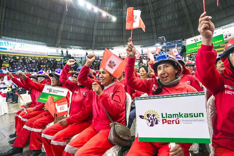 “Llamkasum Perú significa en español ‘Trabajemos Perú’, y daremos más empleo temporal porque sabemos que ustedes, hermanas y hermanos, que integran los programas llevan esa economía a sus hogares y están mejor atendidos. Vamos a crear más Llamkasum a nivel nacional”, enfatizó la Presidenta.