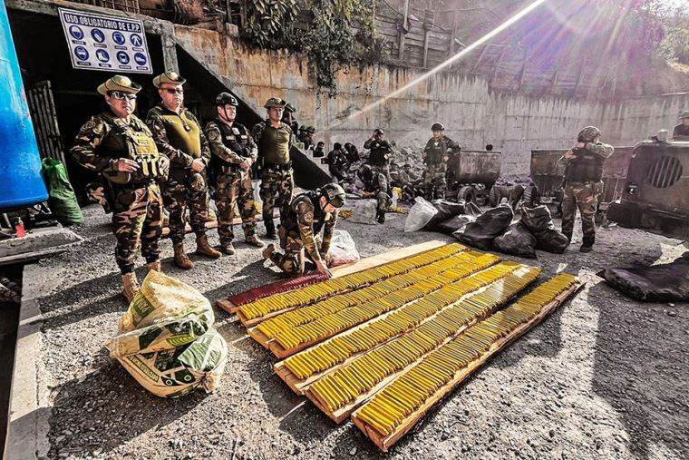 Entre el material incautado también figuran tres cargas explosivas, 10 sacos de plástico con anfo, un cernidor, más de 8600 cartuchos de emulsión, 5400 detonadores ensamblados, 10 carritos mineros, 50 toneladas de desmonte, entre otros bienes.