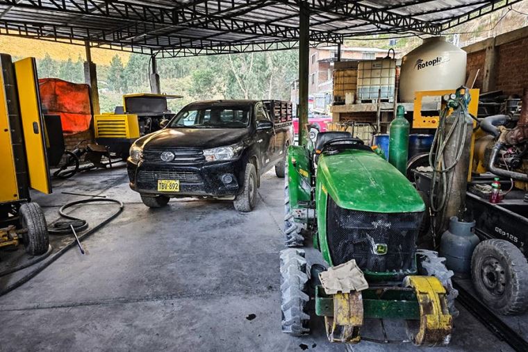 En el lugar, asimismo, fueron hallados diversos bienes empleados para esta ilegal actividad, entre ellos, tres tractores, dos compresoras de aire, dos grupos electrógenos, una camioneta Hilux, así como 12 tanques con combustible diésel.