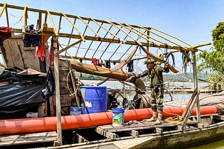 Así se intervinieron cuatro campamentos de procesamiento de material minero metálico, en los que había motores, mangueras, palas, carretillas y balanzas, además de material metálico.