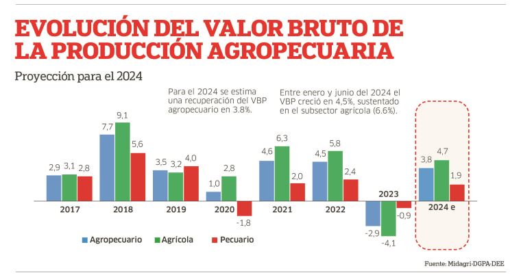 El Midagri proyecta un crecimiento anual del 3.8%, impulsado principalmente por el sector agrícola.