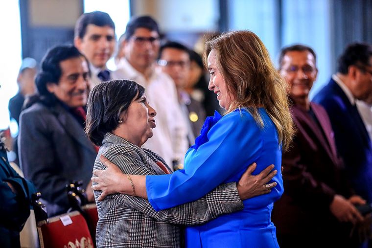 Durante la ceremonia, la mandataria afirmó que el Gobierno busca asegurar la estabilidad laboral de los docentes, mejorar la calidad educativa y fortalecer la educación superior pública en el Perú.