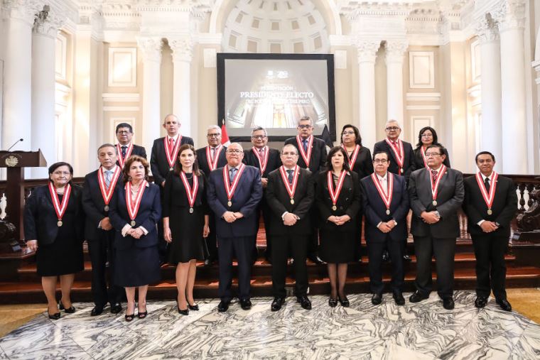 Después de conocerse el resultado, la flamante presidenta agradeció la confianza de sus colegas tras ser presentada como ganadora de la elección por el actual titular del Poder Judicial, Javier Arévalo Vela.
