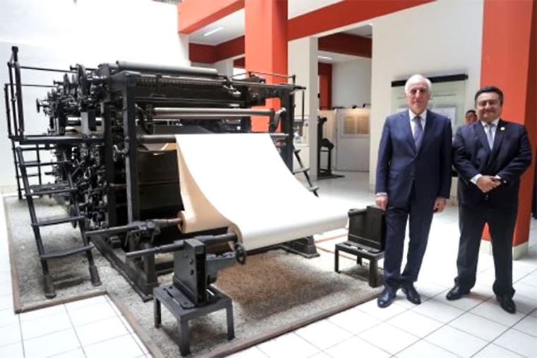 Junto al director de Medios Periodísticos, el presidente de Armenia y su delegación recorrieron las instalaciones del Museo Gráfico del Diario Oficial El Peruano, donde apreció las antiguas rotativas donde se imprimían este medio de comunicación y las portadas que dan cuenta de sus 200 años de historia informativa en el país.