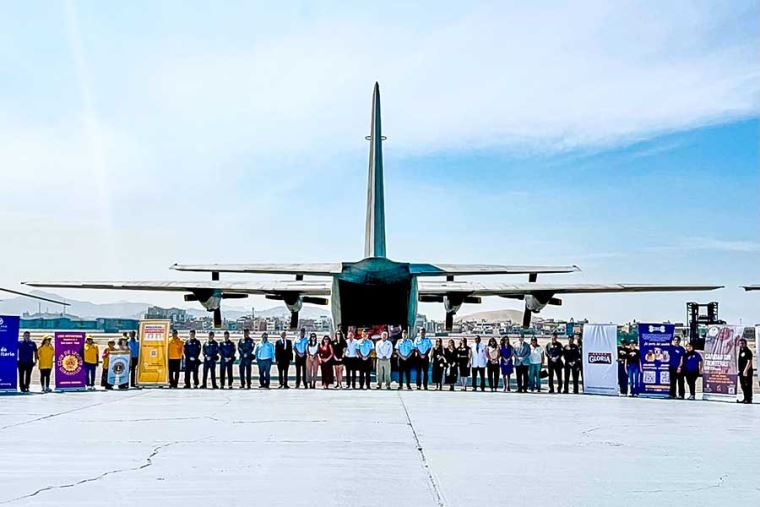 “Lo que más quiero resaltar es la colaboración de otras instituciones que se suman a este esfuerzo de la Fuerza Aérea. Ese es el ejemplo, ese es el modelo que nos hace más unidos, que nos hace más humanos y que nos da la esperanza de que el Perú puede superar los grandes problemas”, destacó el ministro Walter Astudillo durante la ceremonia de inauguración realizada en la Base Aérea Las Palmas, en Surco.