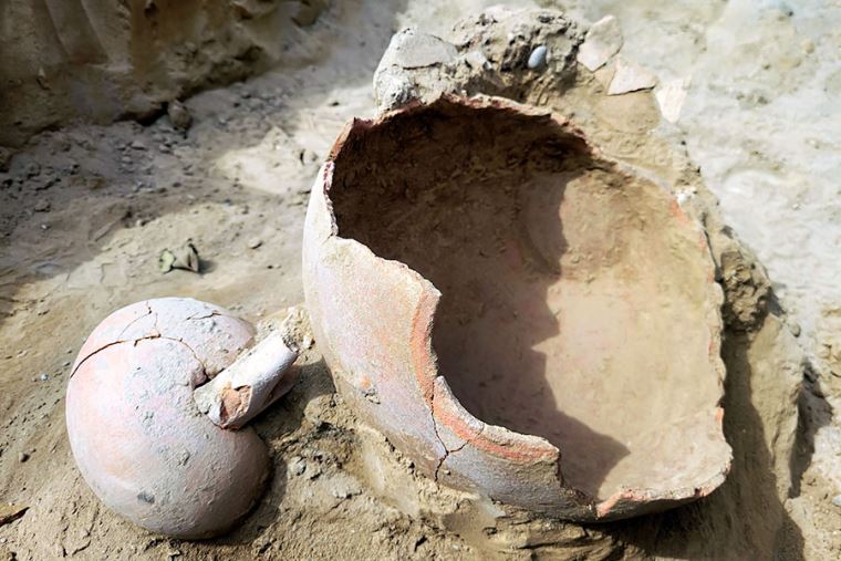 No obstante, recalcó que aún faltan estudios para saber más de este periodo. Las cerámicas encontradas ahora son nueve, repartidas en grupos de 5 y 4. Entre lo desenterrado hay vasijas de doble pico con asa puente de tamaño reducido, mediano y grande.