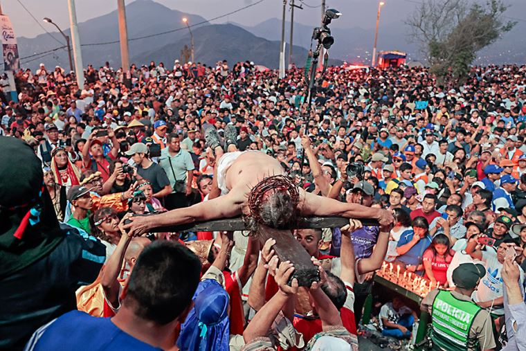 Si bien la escenificación se efectúa desde hace más de 40 años, los fieles quedaron impactados con el realismo de la representación de la muerte de Cristo, que tuvo su punto culminante en la cima del cerro San Cristóbal.