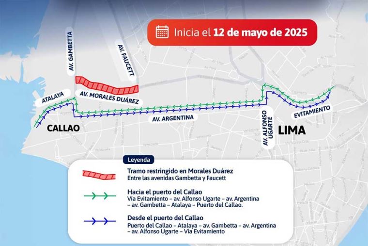 Jorge Chávez: desde hoy 12 de mayo restringen paso de vehículos pesados en Morales Duárez