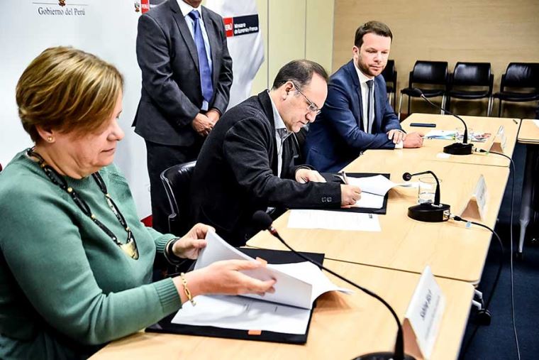 Acuerdo fue firmado entre el ministro de Economía y Finanzas, José Salardi, y representantes del banco de desarrollo KfW y del Gobierno alemán, liderados por la embajadora alemana en el Perú, Sabine Bloch.