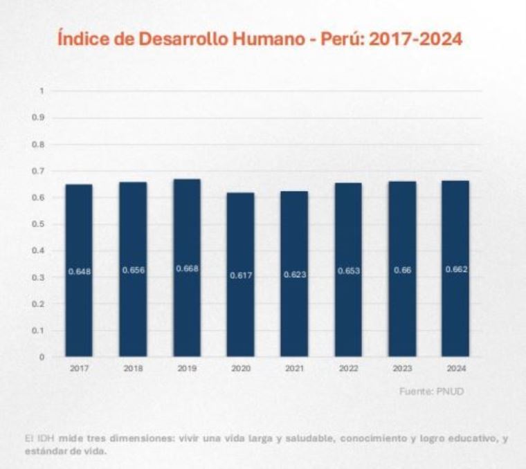 El Informe sobre Desarrollo Humano Perú, 2025, del PNUD actualiza el IDH al 2024, mostrando su evolución desde el 2017.