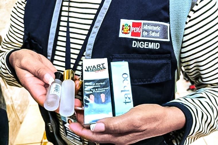“Luego de un trabajo de inteligencia se intervino cuatro stands en donde se encontró gran cantidad de cosméticos y productos sanitarios almacenados en pésimas condiciones, además de productos vencidos, adulterados, sin registro sanitario y en mal estado de conservación que fueron incautados para su análisis y posterior destrucción”, explicó el especialista de la Digemid, Rumi Cabrera.