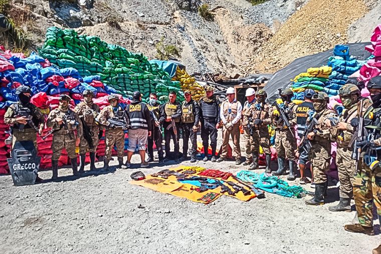 Durante la madrugada, las fuerzas del orden ingresaron de forma sorpresiva en la Concesión Minera María Antonieta, en el anexo Los Alisos, logrando la incautación de un arsenal de guerra y una importante cantidad de explosivos empleados por organizaciones criminales contra la población y realizar actividades ilícitas.
