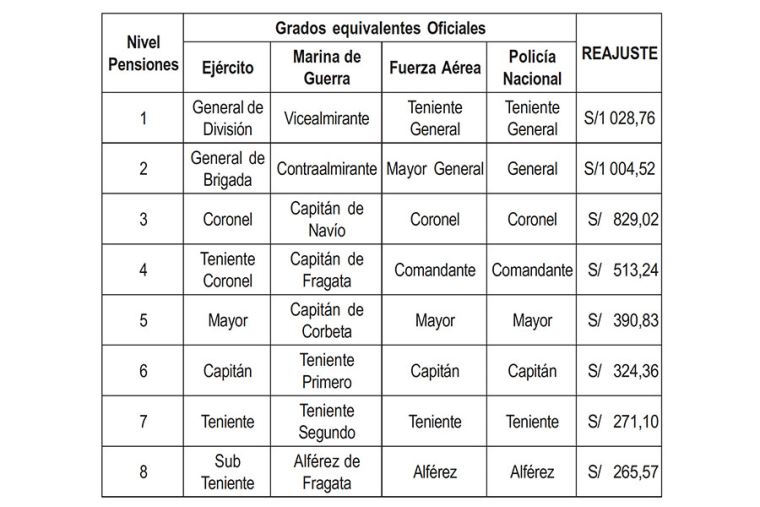 Pensiones FF. AA. y PNP: estos son los aumentos según grado de oficiales, suboficiales y técnicos