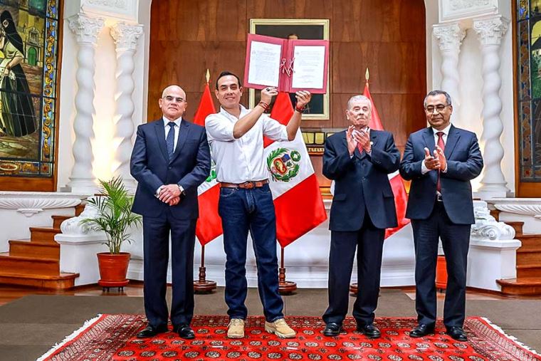 La promulgación de la ley se llevó a cabo en Palacio de Gobierno junto al jefe del Gabinete Ministerial, Ernesto Álvarez; el ministro de Transportes y Comunicaciones, Aldo Prieto, y el titular del Congreso, Fernando Rospigliosi.