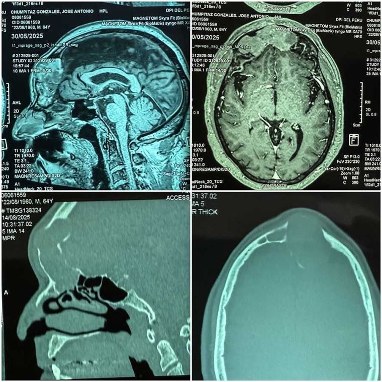 El Dr. Mirek Marcos Quispe, cirujano plástico facial y otorrinolaringólogo del hospital Sabogal, explica que don José llegó con una tumoración en la frente que ya afectaba su movilidad y visión del ojo derecho.