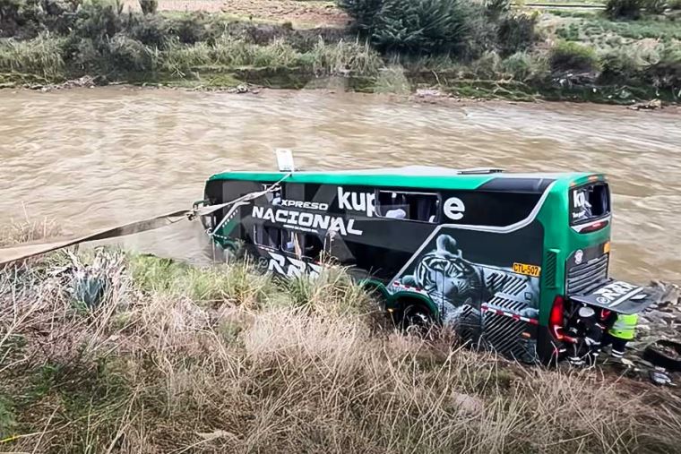 Unidad de empresa internacional Expreso se precipitó al río tras chocar contra un automóvil