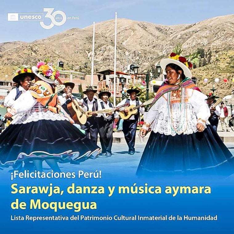 El género musicial y danza Sarawja de origen aimara de Moquegua, es la última expresión cultural del Perú que recibió la declaratoria de Patrimonio Cultural de la Humanidad por el Comité del Patrimonio Inmaterial de la Unesco.