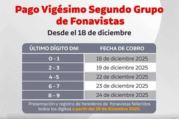 Para el caso de la presentación de documentos y registro de los familiares de los fonavistas fallecidos, este trámite se podrá realizar a partir del 29 de diciembre.