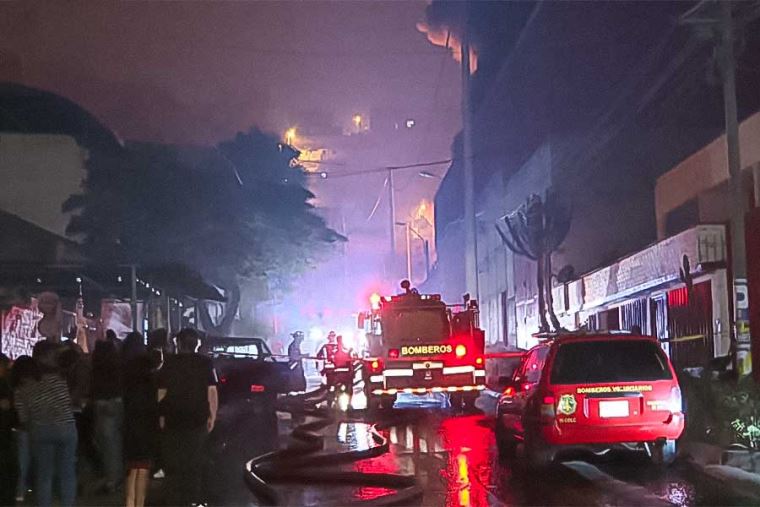 Bomberos controlan incendio de código 4 en almacén de insumos para fabricación de calzados