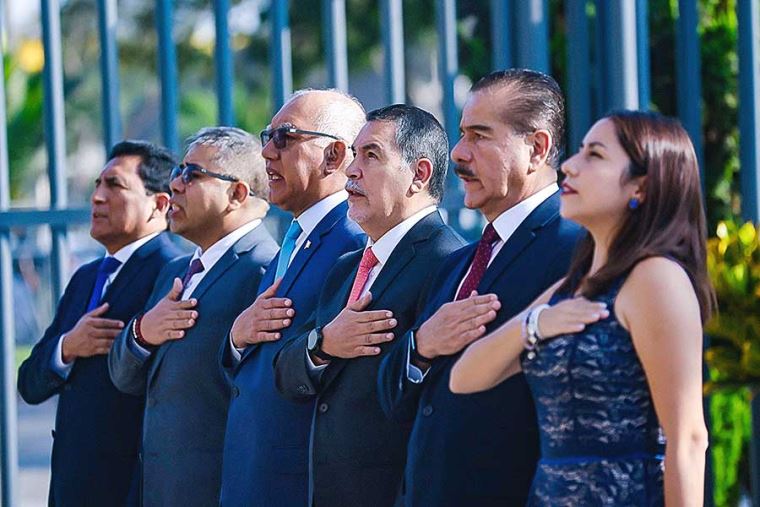 Previo a la reunión, las autoridades y servidores públicos del MINEDU participaron en la solemne ceremonia de izamiento del Pabellón Nacional y entonación del Himno Nacional del Perú, a fin de fortalecer la identidad patriótica.