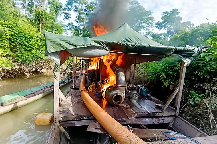 Marina de Guerra destruye dragas ilegales y decomisa madera en operativos en Ucayali y Junín