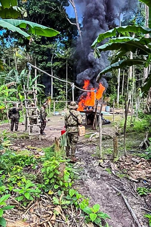 Durante la operación, patrullas integradas del Ejército, la Fuerza Aérea y la Policía, organizadas bajo las denominaciones “Vulcano”, “Zeus” y “Leónidas”, ejecutaron un despliegue helitransportado de alta precisión en una zona de difícil acceso de la Amazonía peruana.