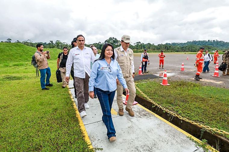 Junto a los ministros de Energía y Minas, Trabajo y Defensa, la titular de la PCM sostiene coordinaciones en el campo con las autoridades y equipos técnicos que realizan las labores de reparación del ducto a fin de garantizar la seguridad de la población.