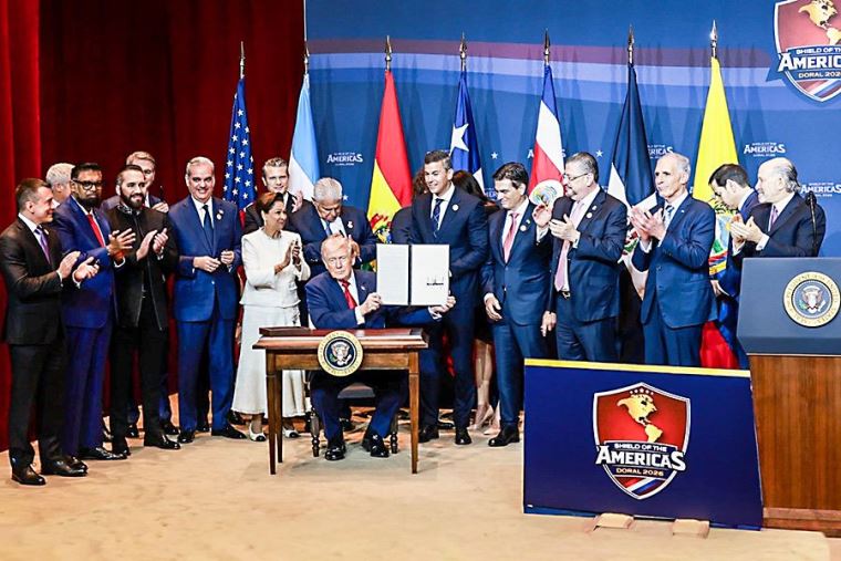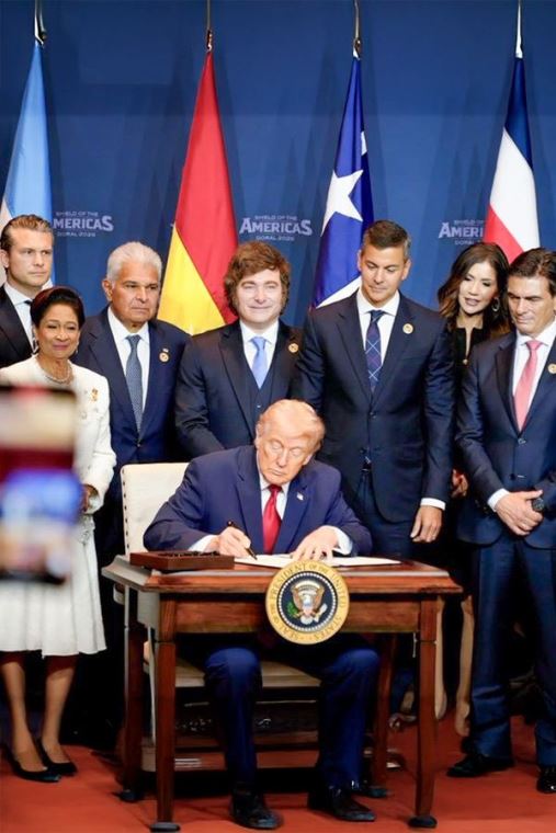 Además de Bukele, Milei y Noboa, Trump recibió en Doral, cerca de Miami, a los presidentes de Bolivia, Costa Rica, República Dominicana, Honduras, Panamá, Paraguay, Guyana y Trinidad y Tobago, así como al presidente electo de Chile, José Antonio Kast.