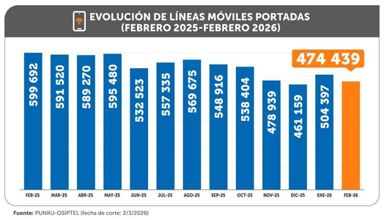 Portabilidad móvil: más de 474,000 líneas cambiaron de empresas operadora en febrero