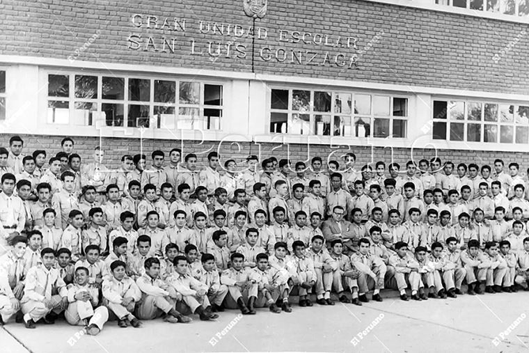 Ica - 21 de noviembre 1956 / Primera promoción de alumnos de instrucción secundaria de la Gran Unidad Escolar San Luis Gonzaga. Foto: Archivo Histórico de El Peruano / Jesús Herrera - Corresponsal