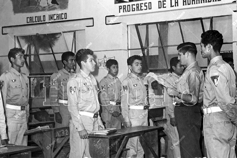 Lambayeque - 29 octubre 1966 / Oficiales de la Guardia Civil dictan cursos intensivos a policías escolares del Colegio Nacional San José de Chiclayo. Foto: Archivo Histórico de El Peruano