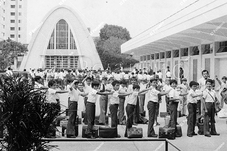 Lima - 20 abril 1978 / Formación de alumnos del nivel primaria del colegio particular San Agustín de San Isidro. Foto: Archivo Histórico de El Peruano / Rolando Ángeles