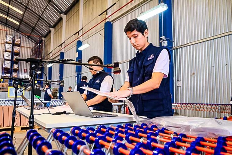 Las mesas tradicionales que se usaban cuando el ensamblaje era totalmente manual han sido sustituidas por fajas transportadoras por gravedad, lo que permite un traslado más efectivo y limpio. "Solo el paquete de cédulas pesa alrededor de 5 kilos y la caja final cerca de 9 kilos. Manipular una caja ya no es lo mismo que antes, cuando pesaba un poco más de dos kilos. Ahora estamos aplicando tecnología para gestionar mejor el ensamblaje y el traslado", explica el gerente de Gestión Electoral, José Samamé.