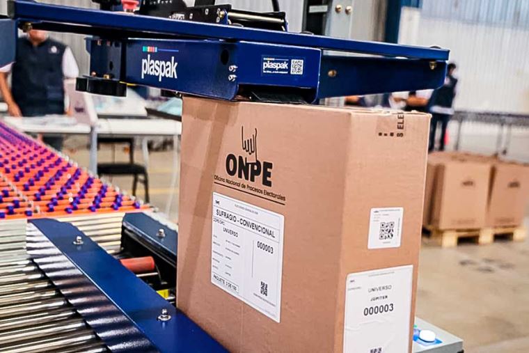 Los materiales electorales que van en las cajas son previamente colocados en paquetes –de instalación, de cédulas y de escrutinio– e incluyen documentos tan importantes como las cédulas de sufragio y las actas electorales. Al paquete de cédulas se le coloca una rótulo con el número de la mesa correspondiente y la cantidad de cédulas incluidas (máximo 300 para el territorio nacional y 500 para el extranjero). Cada cédula lleva ahora un código QR que, al leerse, revela el código de ubicación geográfica (ubigeo) que corresponde al distrito, provincia y región de la mesa donde debe utilizarse. Todas son sometidas a control de calidad, recortadas, clasificadas y empaquetadas.