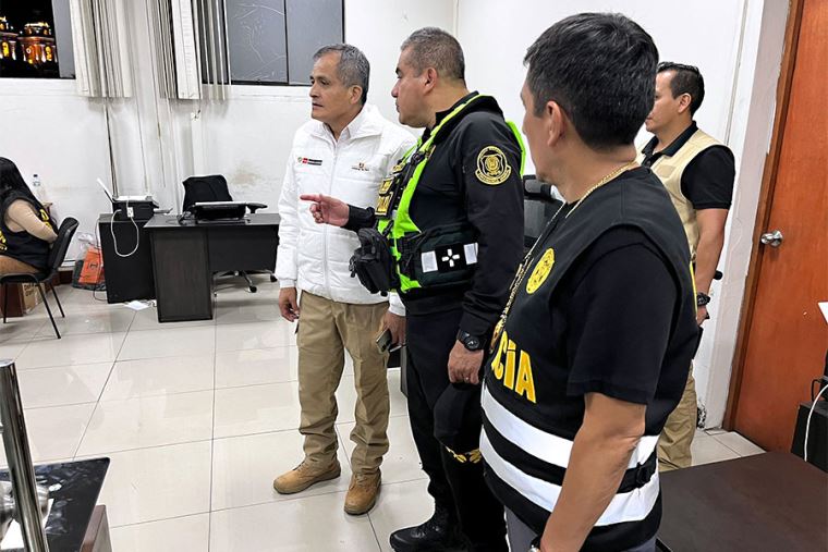 La madrugada de este jueves, el ministro José Zapata lideró un operativo policial de control territorial en Lima Norte y, posteriormente, visitó la sede de la División de Investigación de Extorsiones, en el Rímac, donde supervisó su capacidad de respuesta y los resultados obtenidos en la lucha contra la extorsión en sus diversas modalidades.