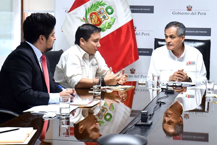 En la reunión también participaron la directora general contra el Crimen Organizado del Mininter, Silvia de la Cruz; el jefe de la División de Investigación de Extorsiones, coronel PNP Holger Obando; así como otros funcionarios del sector.