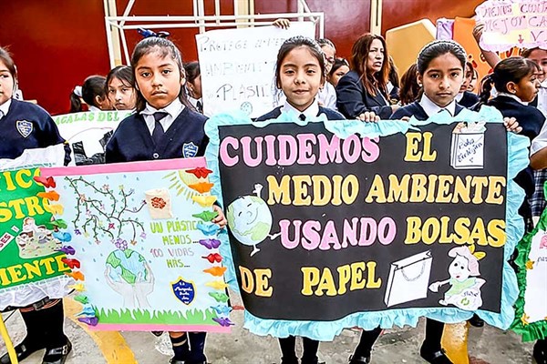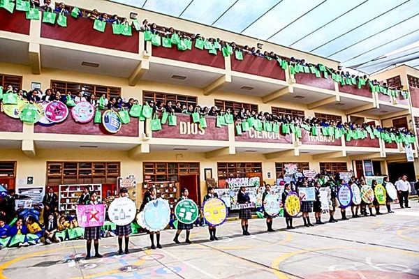Durante su discurso a las estudiantes, la titular del Minam hizo un llamado a promover en su comunidad la reducción del plástico de un solo uso, separar los residuos que generan en las aulas y sus hogares; así como consumir productos nutritivos y naturales.