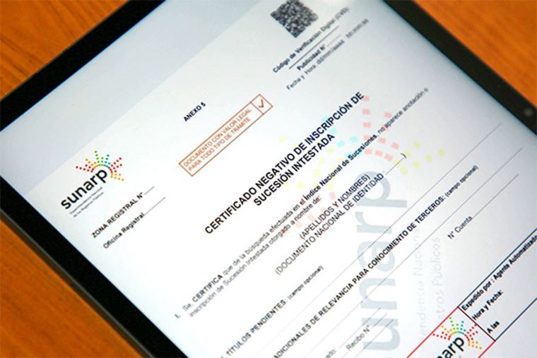 Para tramitar la sucesión intestada, se requiere obtener en la Sunarp los certificados negativo de testamento y sucesión intestada los cuales son necesarios en los procedimientos notarial o judicial al cual se acogerá el ciudadano para tramitar la sucesión.