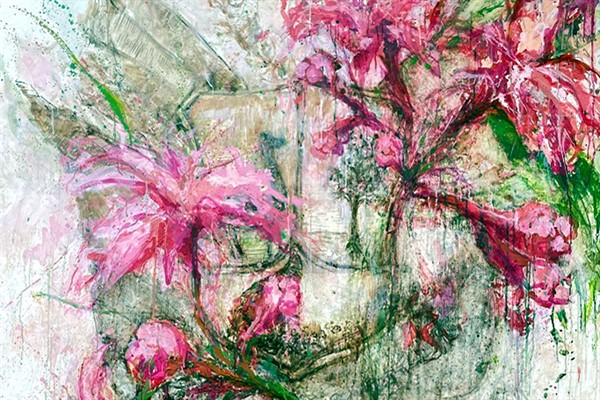 El tercer núcleo de la muestra lo constituyen las reinterpretaciones pictóricas del escudo del Perú y del escudo de Lima. En estas obras, los símbolos heráldicos asociados al poder y a la fundación colonial son intervenidos mediante elementos naturales que alteran su estructura tradicional, incorporando flores y gestos pictóricos que remiten al territorio y a su vitalidad orgánica.