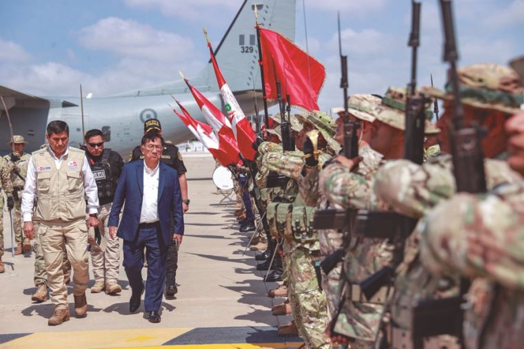 El jefe de Estado aterrizó esta mañana en el Grupo Aéreo n.° 6 de Chiclayo junto al presidente del Consejo de Ministros, Luis Arroyo, y el ministro de Defensa, Carlos Díaz.