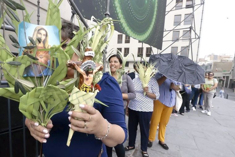 Desde tempranas horas, cientos de fieles se congregaron en la Plaza Mayor de Lima, donde, antes de ingresar al templo, los obispos auxiliares de Lima recorrieron el lugar y rociaron con agua bendita los ramos de palma y olivo que portaban los asistentes como símbolo de fe, esperanza y renovación espiritual.