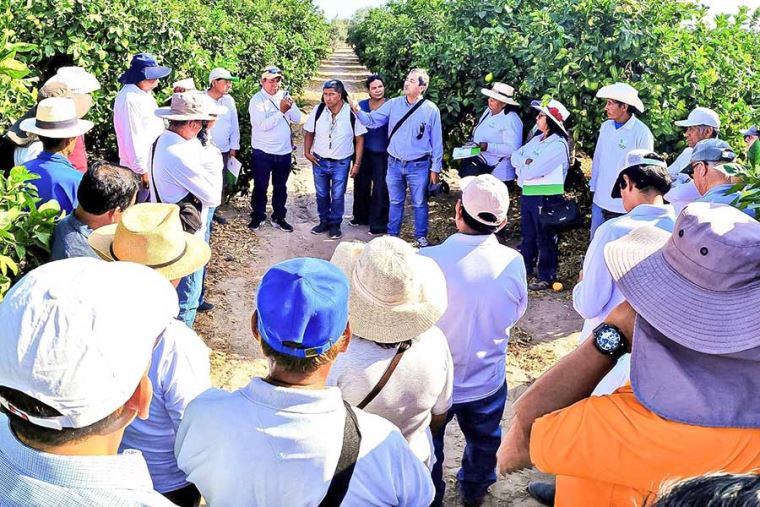 Más de 100 pequeños productores de naranja, organizados en La Yarada Los Palos y Gregorio Albarracín Lanchipa, fortalecen sus capacidades técnicas y comerciales para mejorar productividad, calidad y acceso a mercados.