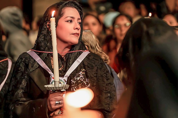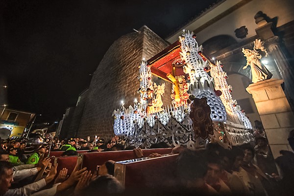 Alfombras multicolores, velas encendidas y oraciones susurradas acompañaron el paso solemne de las imágenes sagradas, que partieron a las 20:00 horas desde el Templo del Convento de Santa Clara.