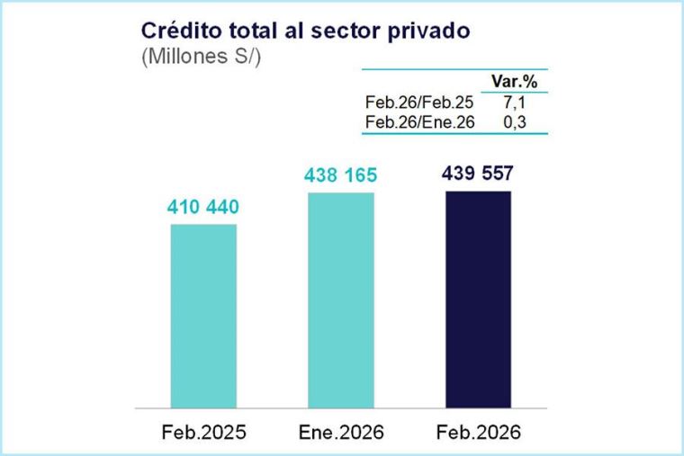 Crédito total al sector privado creció 7,1 % interanual en febrero de 2026