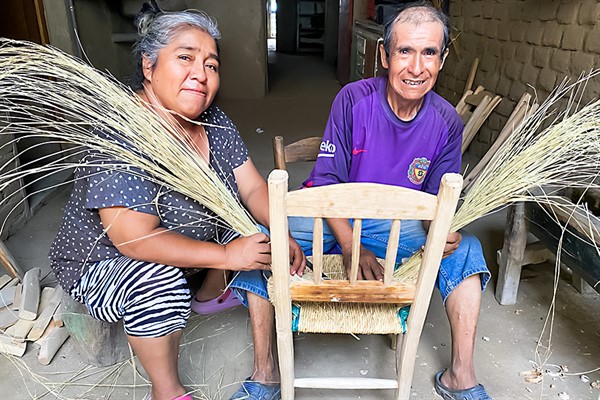 Su labor se ha convertido en su pasatiempo favorito. Inicia desde las primeras horas del día, cuando los rayos del sol se asoman por su ventana y la brisa se torna más fresca. Vive solo en su inmueble del distrito de El Porvenir (Trujillo), adonde llegan sus sobrinos: Paola Edith Sandoval y Gabriel Tomaylla, quienes lo ayudan con el armado, tejido y detalles de sus productos, para luego venderlos en los mercados de la zona.
