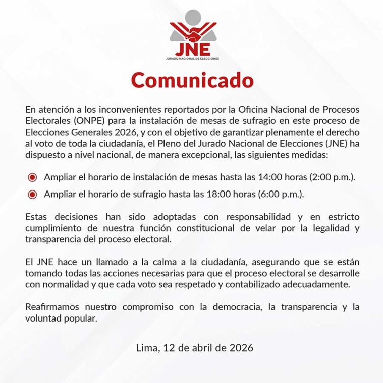 — JNE Perú (@JNE_Peru) April 12, 2026