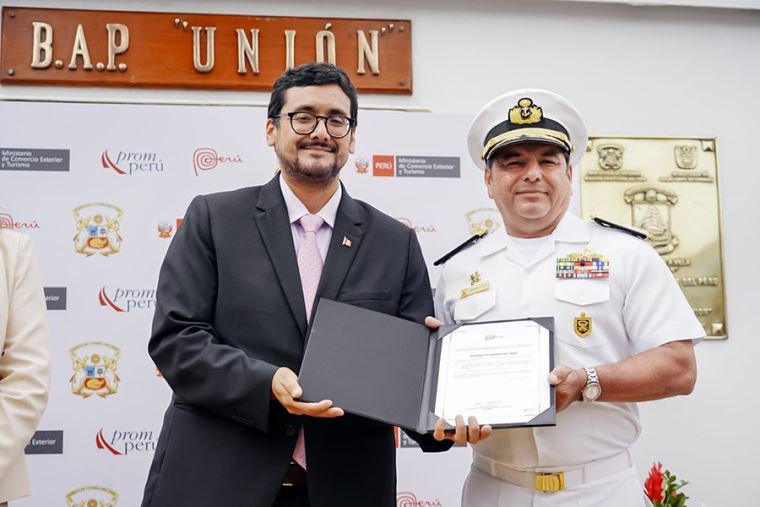 Como parte de la ceremonia, el ministro José Reyes Llanos realizó la entrega oficial de la licencia de uso de la Marca Perú a la Marina de Guerra del Perú, en reconocimiento a su rol como aliado estratégico en la difusión de la imagen país.