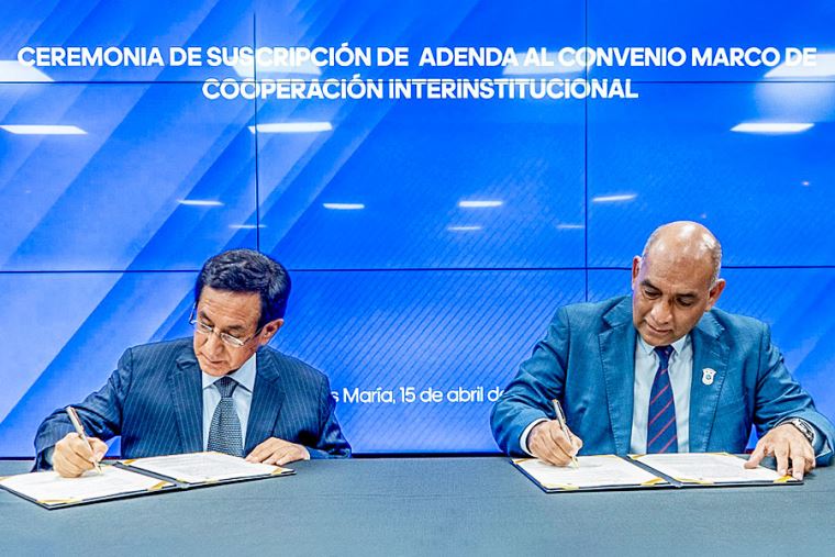 En el acto protocolar también participó el Gerente General de Migraciones, Ever Benildo Ruiz Vargas, junto a altos directivos de ambas instituciones.